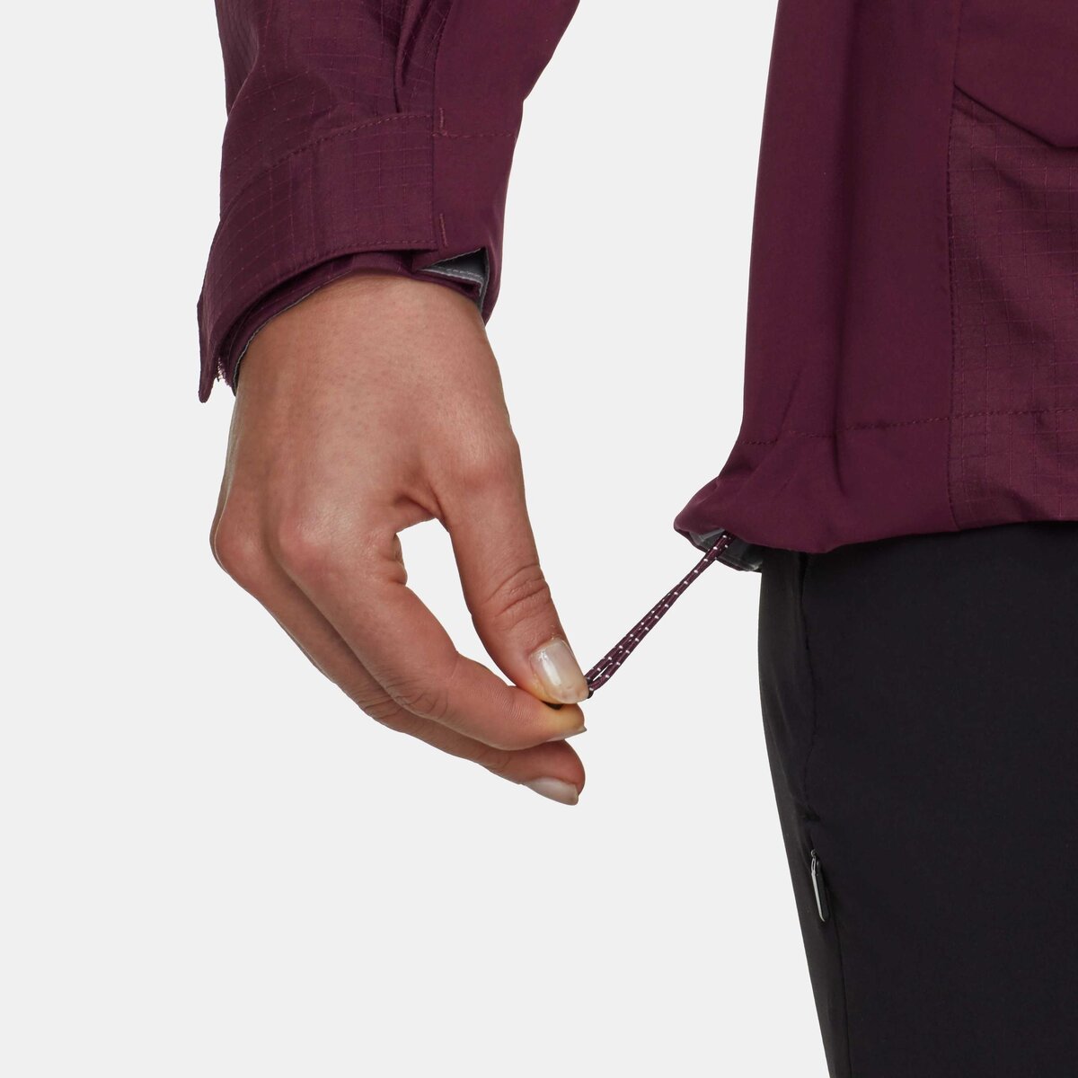 - 1-point adjustable hood with exterior drawstring for easy repair
