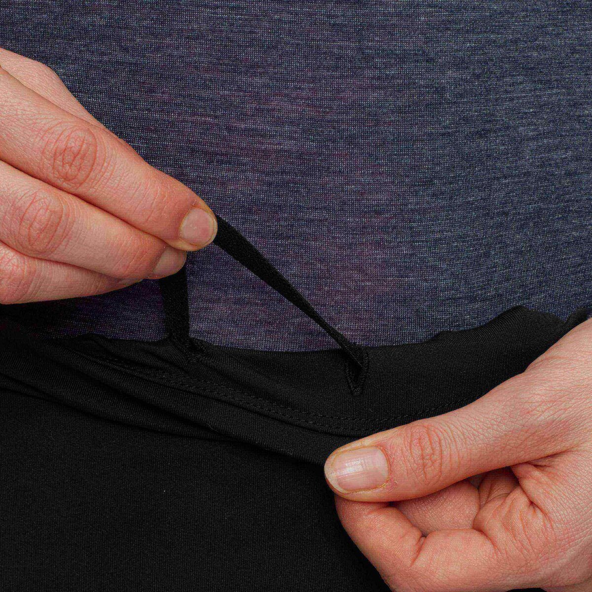 - Pleasantly soft and elastic material made from recycled polyester and elastane